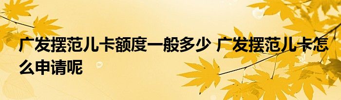 导读 大家好,小元来为大家解答问题。广发摆范儿卡额度一般多少,广发摆范儿卡怎么申请呢这个很多人还不知道,现在让我们一起来了解下吧!