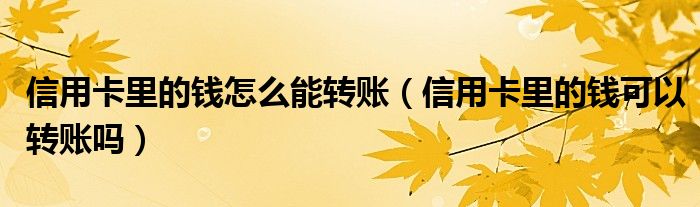 导读 大家好,小元来为大家解答问题。信用卡里的钱怎么能转账,信用卡里的钱可以转账吗这个很多人还不知道,现在让我们一起来了解下吧!
