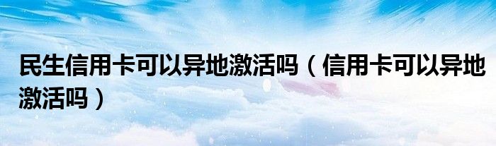 导读 大家好,小元来为大家解答问题。民生信用卡可以异地激活吗,信用卡可以异地激活吗这个很多人还不知道,现在让我们一起来了解下吧!