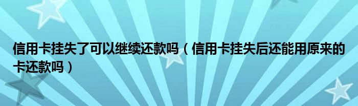 导读 大家好,小元来为大家解答问题。信用卡挂失了可以继续还款吗,信用卡挂失后还能用原来的卡还款吗这个很多人还不知道,现在让我们一起来了解
