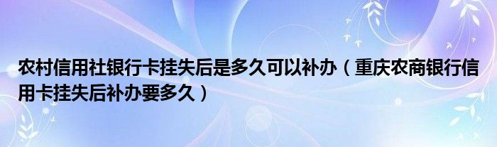 导读 大家好,小元来为大家解答问题。农村信用社银行卡挂失后是多久可以补办,重庆农商银行信用卡挂失后补办要多久这个很多人还不知道,现在让我