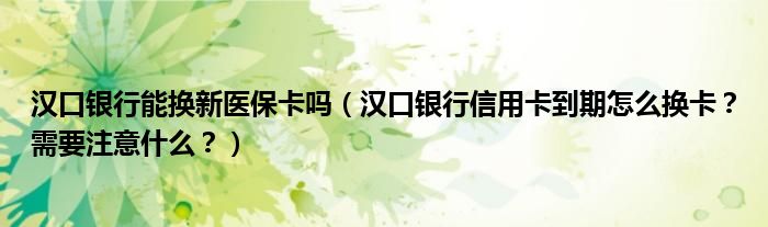 导读 大家好,小元来为大家解答问题。汉口银行能换新医保卡吗,汉口银行信用卡到期怎么换卡?需要注意什么?这个很多人还不知道,现在让我们一起