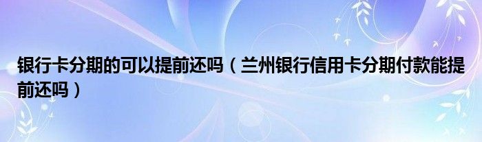 导读 大家好,小元来为大家解答问题。银行卡分期的可以提前还吗,兰州银行信用卡分期付款能提前还吗这个很多人还不知道,现在让我们一起来了解下