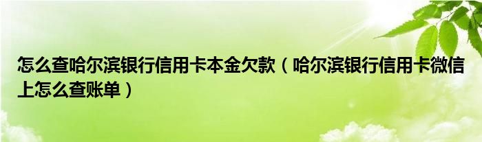 导读 大家好,小元来为大家解答问题。怎么查哈尔滨银行信用卡本金欠款,哈尔滨银行信用卡微信上怎么查账单这个很多人还不知道,现在让我们一起来