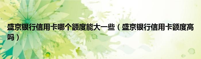 导读 大家好,小元来为大家解答问题。盛京银行信用卡哪个额度能大一些,盛京银行信用卡额度高吗这个很多人还不知道,现在让我们一起来了解下吧!
