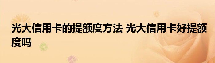 导读 大家好,小元来为大家解答问题。光大信用卡的提额度方法,光大信用卡好提额度吗这个很多人还不知道,现在让我们一起来了解下吧!