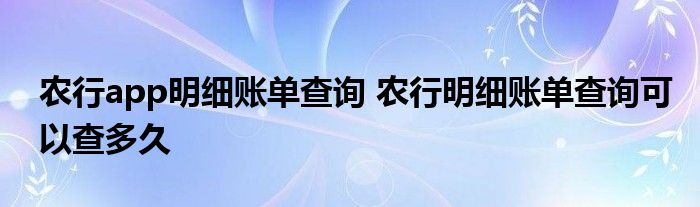 导读 大家好,小元来为大家解答问题。农行app明细账单查询,农行明细账单查询可以查多久这个很多人还不知道,现在让我们一起来了解下吧!