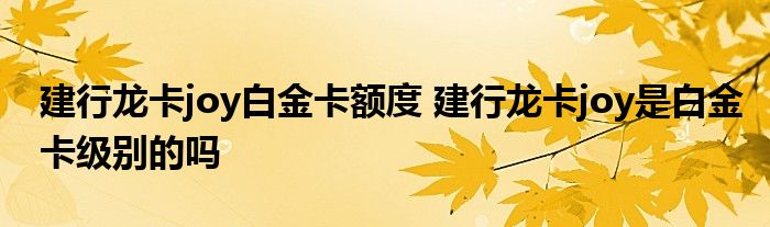 导读 大家好,小元来为大家解答问题。建行龙卡joy白金卡额度,建行龙卡joy是白金卡级别的吗这个很多人还不知道,现在让我们一起来了解下吧!