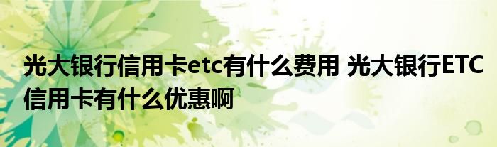 导读 大家好,小元来为大家解答问题。光大银行信用卡etc有什么费用,光大银行ETC信用卡有什么优惠啊这个很多人还不知道,现在让我们一起来了解下