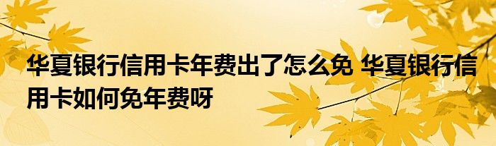 导读 大家好,小元来为大家解答问题。华夏银行信用卡年费出了怎么免,华夏银行信用卡如何免年费呀这个很多人还不知道,现在让我们一起来了解下吧