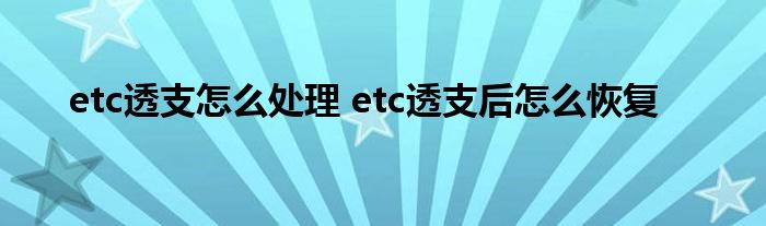 导读 大家好,小元来为大家解答问题。etc透支怎么处理,etc透支后怎么恢复这个很多人还不知道,现在让我们一起来了解下吧!