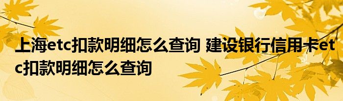 导读 大家好,小元来为大家解答问题。上海etc扣款明细怎么查询,建设银行信用卡etc扣款明细怎么查询这个很多人还不知道,现在让我们一起来了解下