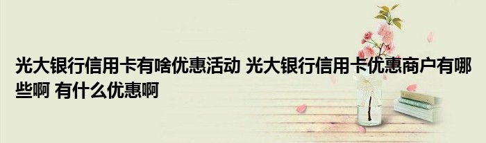 导读 大家好,小元来为大家解答问题。光大银行信用卡有啥优惠活动,光大银行信用卡优惠商户有哪些啊,有什么优惠啊这个很多人还不知道,现在让我