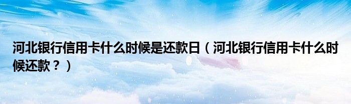 导读 大家好,小元来为大家解答问题。河北银行信用卡什么时候是还款日,河北银行信用卡什么时候还款?这个很多人还不知道,现在让我们一起来了解