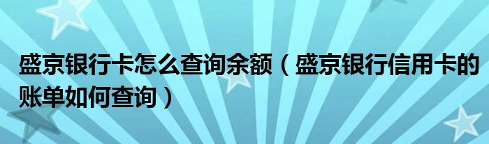导读 大家好,小元来为大家解答问题。盛京银行卡怎么查询余额,盛京银行信用卡的账单如何查询这个很多人还不知道,现在让我们一起来了解下吧!根