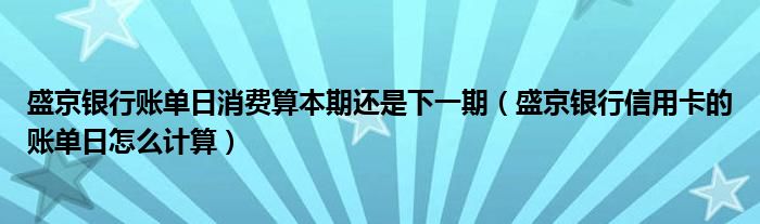 导读 大家好,小元来为大家解答问题。盛京银行账单日消费算本期还是下一期,盛京银行信用卡的账单日怎么计算这个很多人还不知道,现在让我们一起