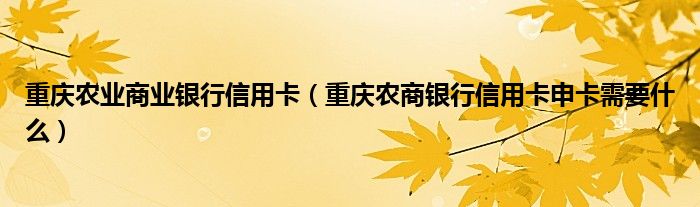 导读 大家好,小元来为大家解答问题。重庆农业商业银行信用卡,重庆农商银行信用卡申卡需要什么这个很多人还不知道,现在让我们一起来了解下吧!