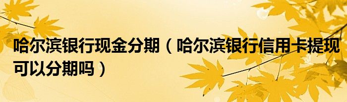 导读 大家好,小元来为大家解答问题。哈尔滨银行现金分期,哈尔滨银行信用卡提现可以分期吗这个很多人还不知道,现在让我们一起来了解下吧!一、