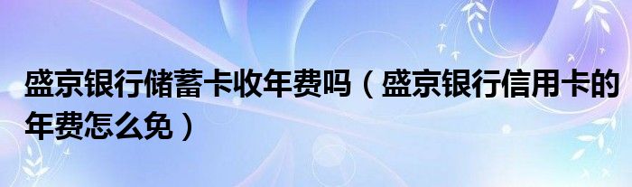 大家好,小元来为大家解答问题。盛京银行储蓄卡收年费吗,盛京银行信用卡的年费怎么免这个很多人还不知道,现在让我们一起来了解下吧!