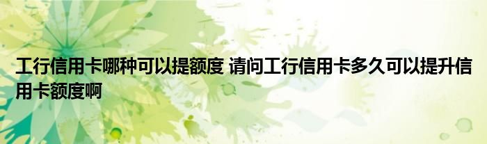 导读 大家好,小元来为大家解答问题。工行信用卡哪种可以提额度,请问工行信用卡多久可以提升信用卡额度啊这个很多人还不知道,现在让我们一起来