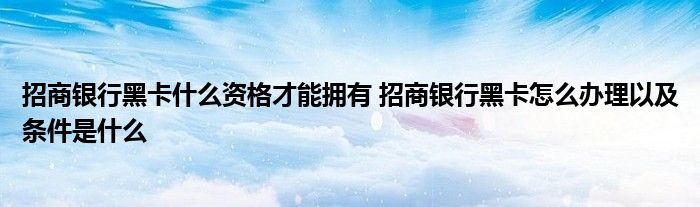 导读 大家好,小元来为大家解答问题。招商银行黑卡什么资格才能拥有,招商银行黑卡怎么办理以及条件是什么这个很多人还不知道,现在让我们一起来