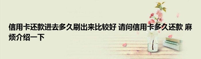 导读 大家好,小元来为大家解答问题。信用卡还款进去多久刷出来比较好,请问信用卡多久还款,麻烦介绍一下这个很多人还不知道,现在让我们一起来