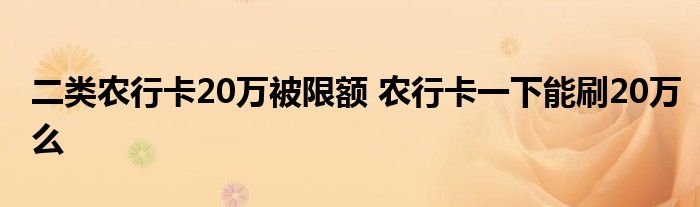 大家好,小元来为大家解答问题。二类农行卡20万被限额,农行卡一下能刷20万么这个很多人还不知道,现在让我们一起来了解下吧!