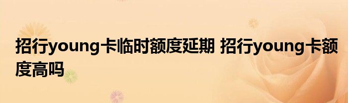 导读 大家好,小元来为大家解答问题。招行young卡临时额度延期,招行young卡额度高吗这个很多人还不知道,现在让我们一起来了解下吧!