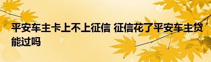 导读 大家好,小元来为大家解答问题。平安车主卡上不上征信,征信花了平安车主贷能过吗这个很多人还不知道,现在让我们一起来了解下吧!