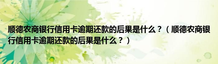 导读 大家好,小元来为大家解答问题。顺德农商银行信用卡逾期还款的后果是什么?,顺德农商银行信用卡逾期还款的后果是什么?这个很多人还不知道