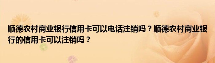 导读 大家好,小元来为大家解答问题。顺德农村商业银行信用卡可以电话注销吗?顺德农村商业银行的信用卡可以注销吗?这个很多人还不知道,现在让