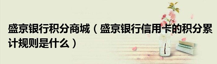 导读 大家好,小元来为大家解答问题。盛京银行积分商城,盛京银行信用卡的积分累计规则是什么这个很多人还不知道,现在让我们一起来了解下吧!积