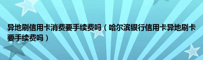 导读 大家好,小元来为大家解答问题。异地刷信用卡消费要手续费吗,哈尔滨银行信用卡异地刷卡要手续费吗这个很多人还不知道,现在让我们一起来了