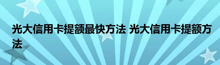 导读 大家好,小元来为大家解答问题。光大信用卡提额最快方法,光大信用卡提额方法这个很多人还不知道,现在让我们一起来了解下吧!