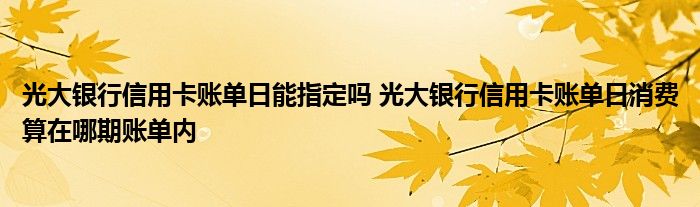 导读 大家好,小元来为大家解答问题。光大银行信用卡账单日能指定吗,光大银行信用卡账单日消费算在哪期账单内这个很多人还不知道,现在让我们一