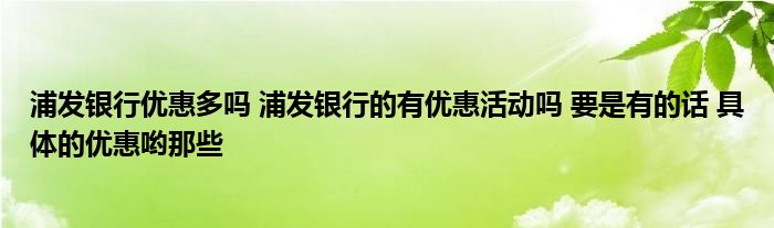 大家好,小元来为大家解答问题。浦发银行优惠多吗,浦发银行的有优惠活动吗,要是有的话,具体的优惠哟那些这个很多人还不知道,现在让我们一起来了解下吧!
