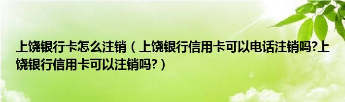 导读 大家好,小元来为大家解答问题。上饶银行卡怎么注销,上饶银行信用卡可以电话注销吗?上饶银行信用卡可以注销吗?这个很多人还不知道,现在让