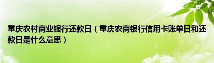 导读 大家好,小元来为大家解答问题。重庆农村商业银行还款日,重庆农商银行信用卡账单日和还款日是什么意思这个很多人还不知道,现在让我们一起