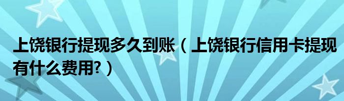 导读 大家好,小元来为大家解答问题。上饶银行提现多久到账,上饶银行信用卡提现有什么费用?这个很多人还不知道,现在让我们一起来了解下吧!每个