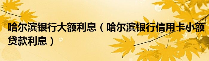 导读 大家好,小元来为大家解答问题。哈尔滨银行大额利息,哈尔滨银行信用卡小额贷款利息这个很多人还不知道,现在让我们一起来了解下吧!哈尔滨