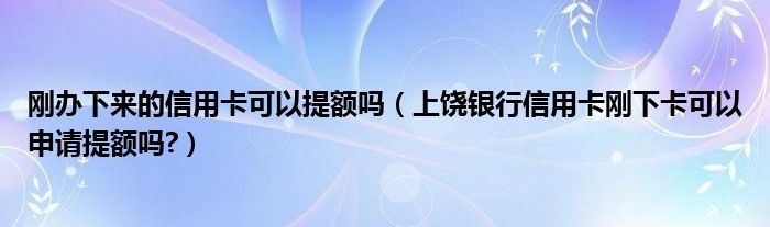 导读 大家好,小元来为大家解答问题。刚办下来的信用卡可以提额吗,上饶银行信用卡刚下卡可以申请提额吗?这个很多人还不知道,现在让我们一起来了