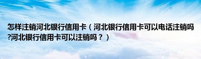 导读 大家好,小元来为大家解答问题。怎样注销河北银行信用卡,河北银行信用卡可以电话注销吗?河北银行信用卡可以注销吗?这个很多人还不知道,现