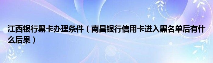 导读 大家好,小元来为大家解答问题。江西银行黑卡办理条件,南昌银行信用卡进入黑名单后有什么后果这个很多人还不知道,现在让我们一起来了解下