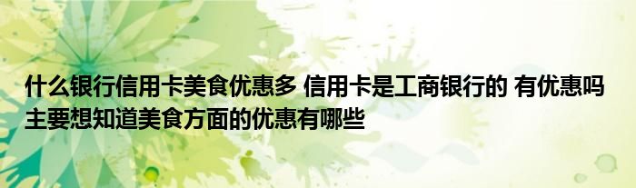 导读 大家好,小元来为大家解答问题。什么银行信用卡美食优惠多,信用卡是工商银行的,有优惠吗,主要想知道美食方面的优惠有哪些这个很多人还不