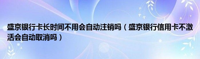 导读 大家好,小元来为大家解答问题。盛京银行卡长时间不用会自动注销吗,盛京银行信用卡不激活会自动取消吗这个很多人还不知道,现在让我们一起
