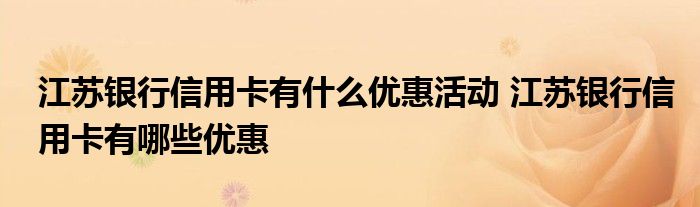 导读 大家好,小元来为大家解答问题。江苏银行信用卡有什么优惠活动,江苏银行信用卡有哪些优惠这个很多人还不知道,现在让我们一起来了解下吧!