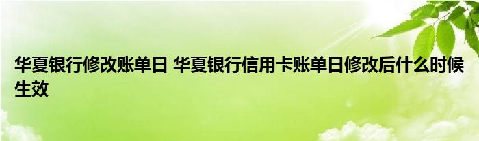 导读 大家好,小元来为大家解答问题。华夏银行修改账单日,华夏银行信用卡账单日修改后什么时候生效这个很多人还不知道,现在让我们一起来了解下
