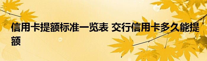 导读 大家好,小元来为大家解答问题。信用卡提额标准一览表,交行信用卡多久能提额这个很多人还不知道,现在让我们一起来了解下吧!