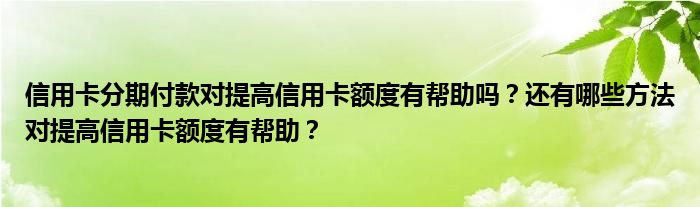 导读 大家好,小元来为大家解答问题。信用卡分期付款对提高信用卡额度有帮助吗?还有哪些方法对提高信用卡额度有帮助?这个很多人还不知道,现在