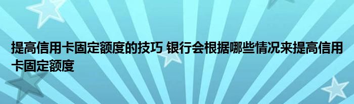 导读 大家好,小元来为大家解答问题。提高信用卡固定额度的技巧,银行会根据哪些情况来提高信用卡固定额度这个很多人还不知道,现在让我们一起来